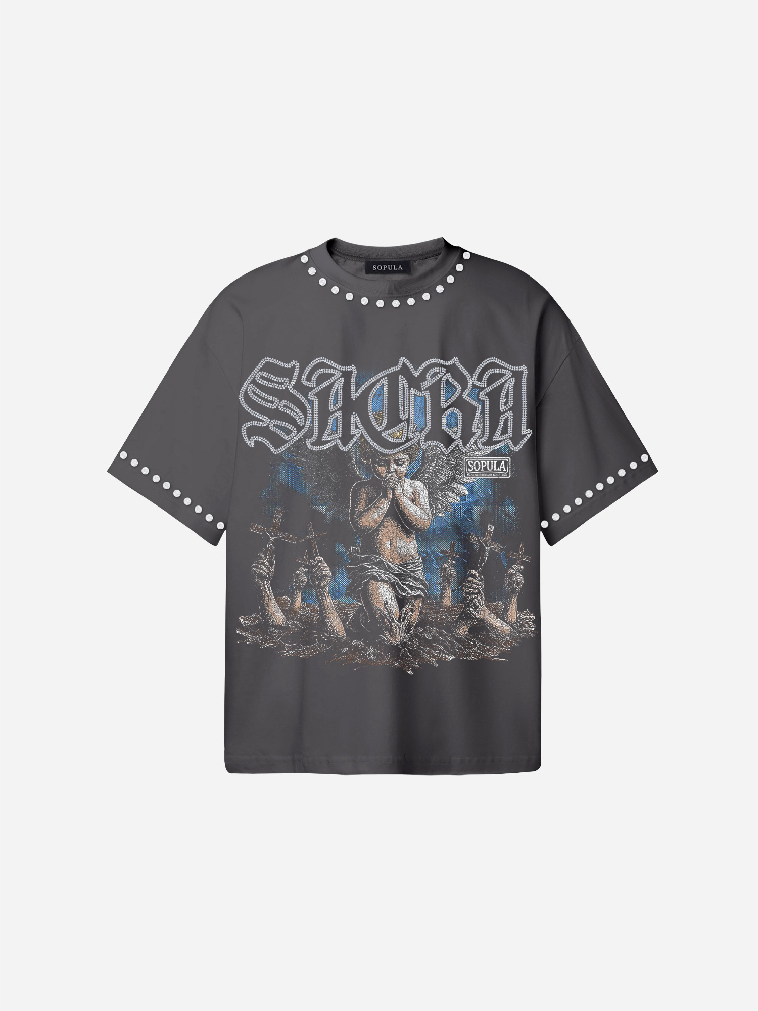 Sacra Retro Angel Graphic Rhinestone T-shirt$46.99 USD