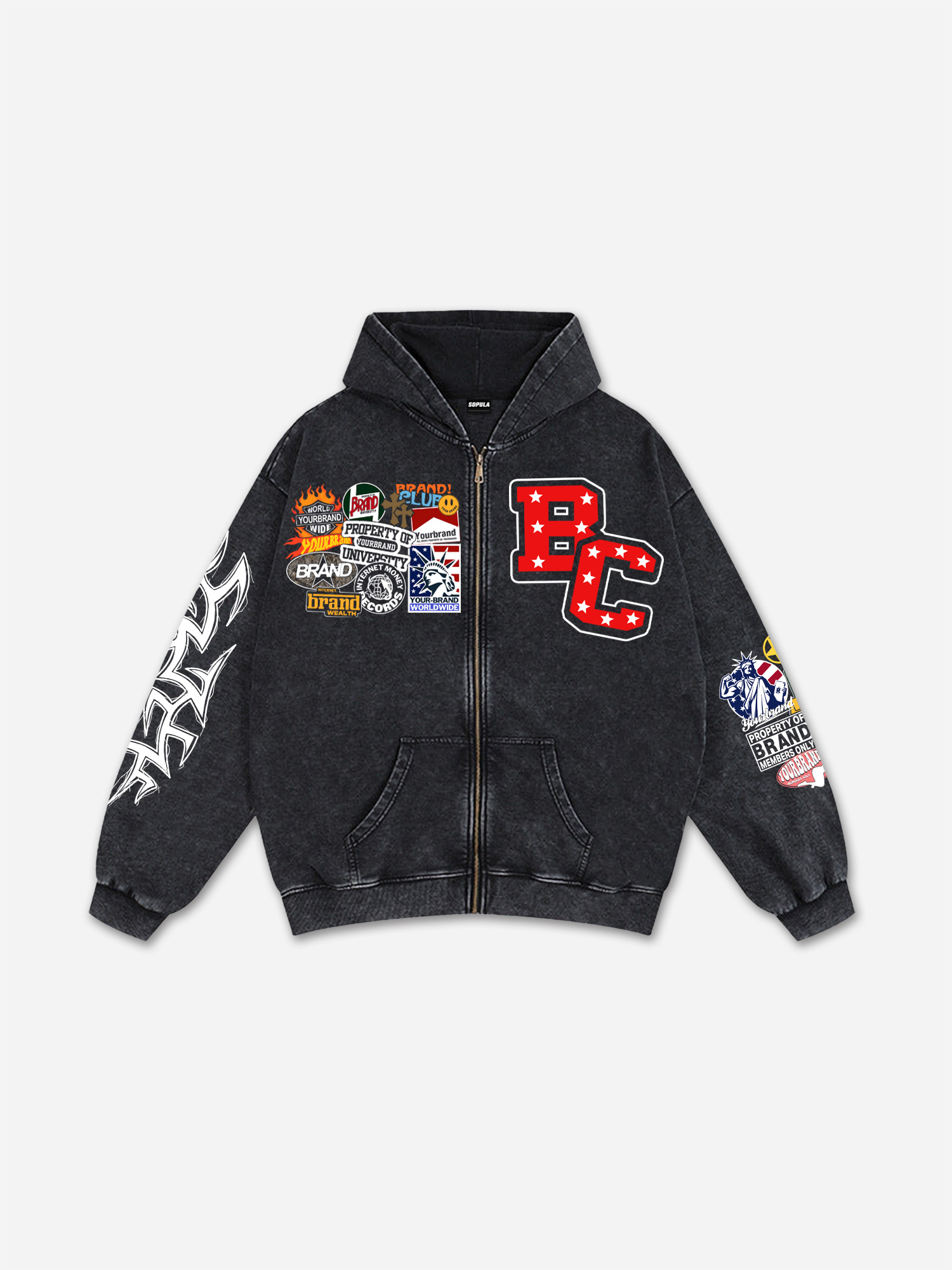 Sopula Star Eyes Graphic Acid Wash Hoodie$69.99 USD